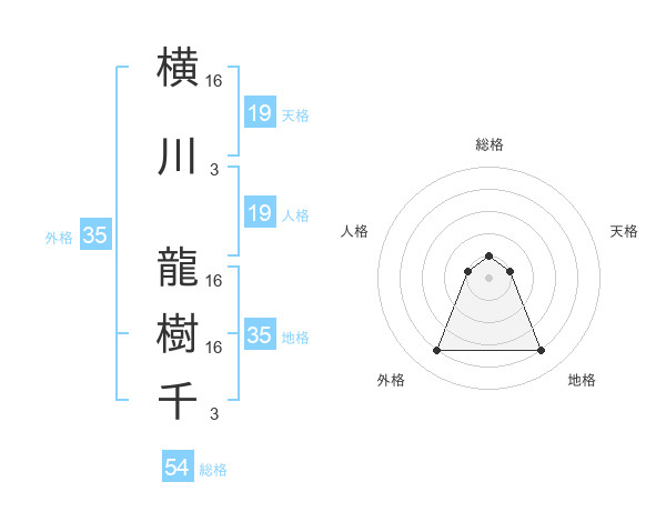 横川 龍樹千さんを姓名の画数から五運を鑑定
