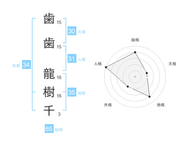 歯歯 龍樹千さんを姓名の画数から五運を鑑定