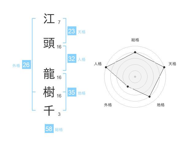 江頭 龍樹千さんを姓名の画数から五運を鑑定