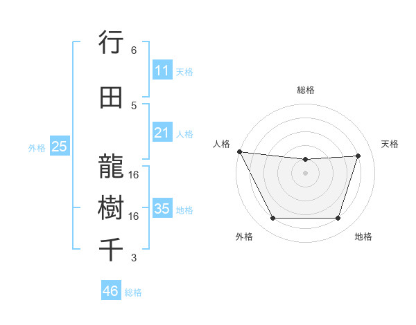 行田 龍樹千さんを姓名の画数から五運を鑑定