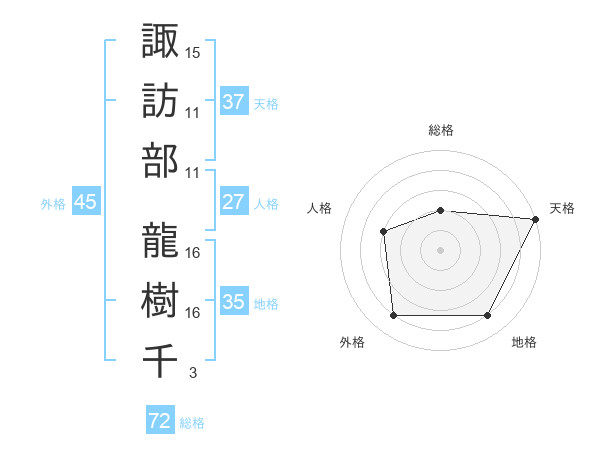 諏訪部 龍樹千さんの外格は45画の4点!