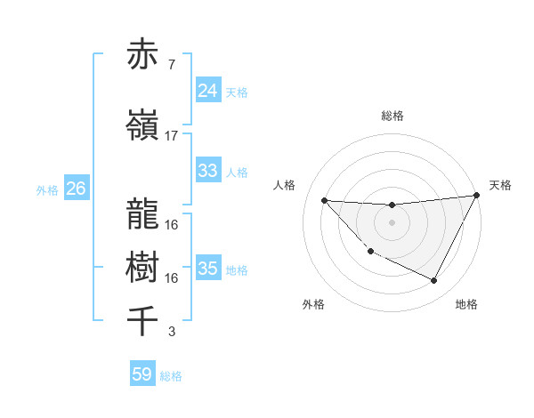 赤嶺 龍樹千さんを姓名の画数から五運を鑑定