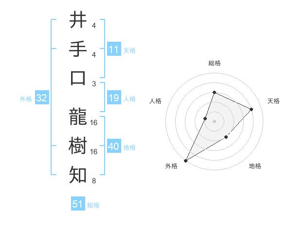 井手口 龍樹知さんを姓名の画数から五運を鑑定