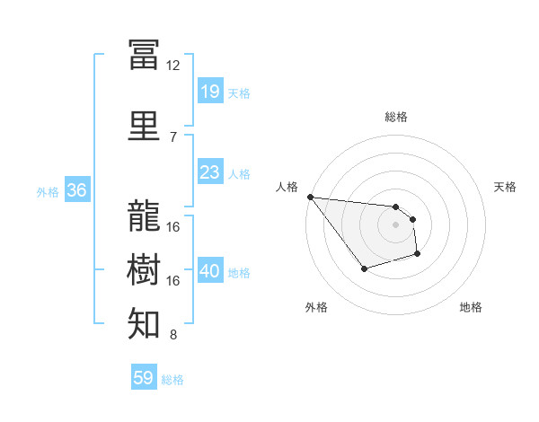冨里 龍樹知さんの地格は40画の2点