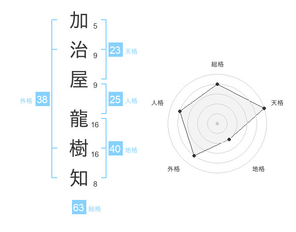 加治屋 龍樹知さんを姓名の画数から五運を鑑定