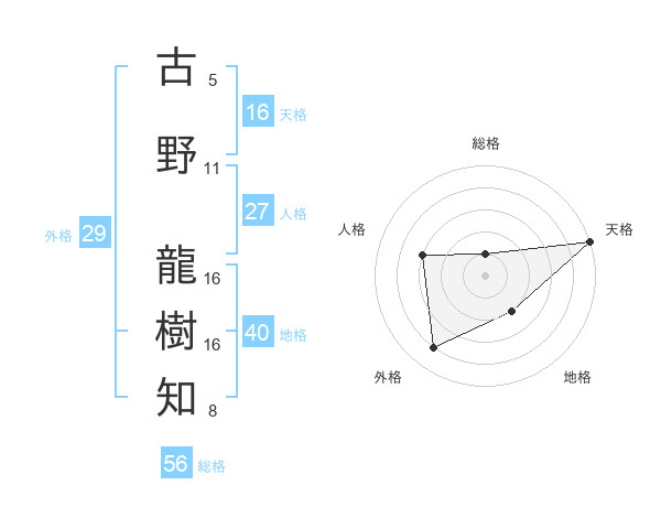 古野 龍樹知さんを姓名の画数から五運を鑑定