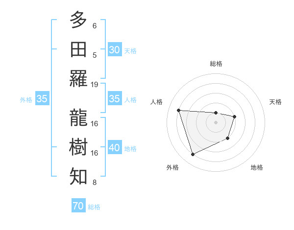 多田羅 龍樹知さんを姓名の画数から五運を鑑定