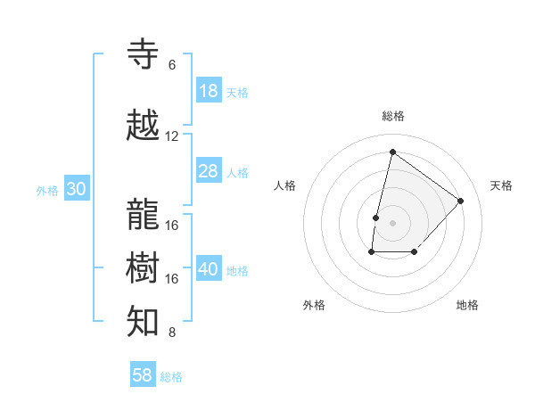 寺越 龍樹知さんを姓名の画数から五運を鑑定