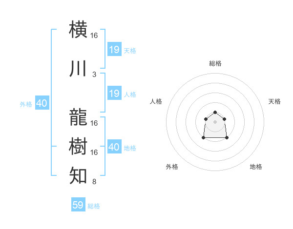 横川 龍樹知さんの総格は59画の1点
