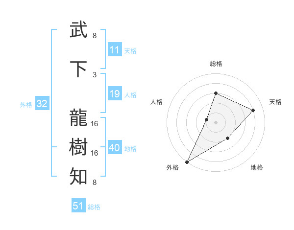 武下 龍樹知さんを姓名の画数から五運を鑑定