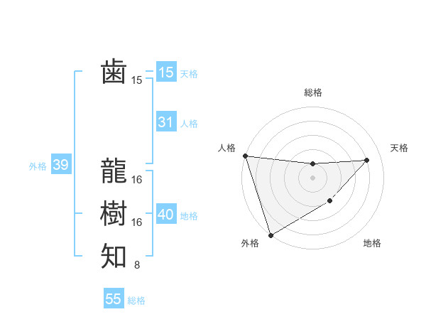 歯 龍樹知さんを姓名の画数から五運を鑑定