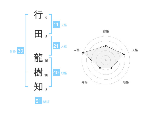 行田 龍樹知さんを姓名の画数から五運を鑑定