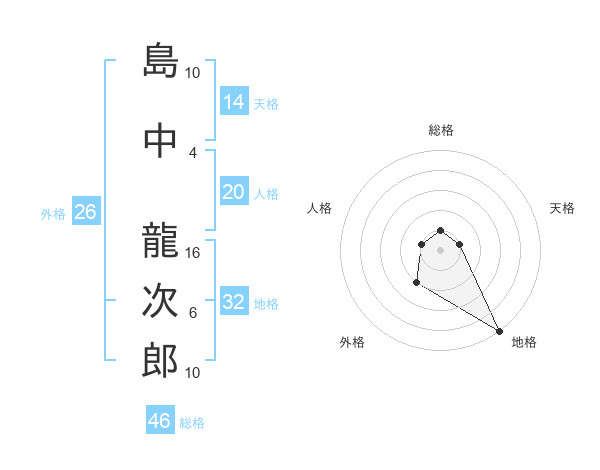 島中 龍次郎さんを姓名の画数から五運を鑑定