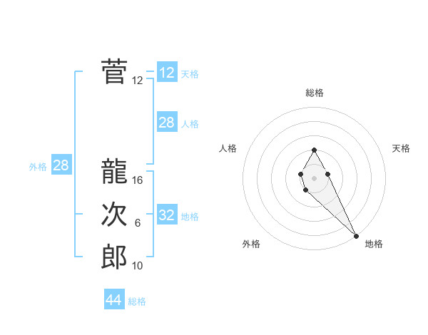 菅 龍次郎さんの総格は44画の2点!