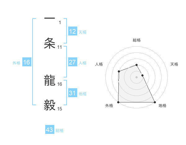 一条 龍毅さんを姓名の画数から五運を鑑定