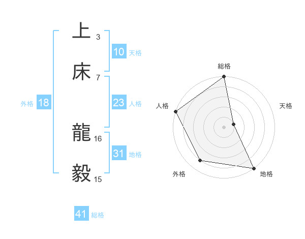 上床 龍毅さんを姓名の画数から五運を鑑定
