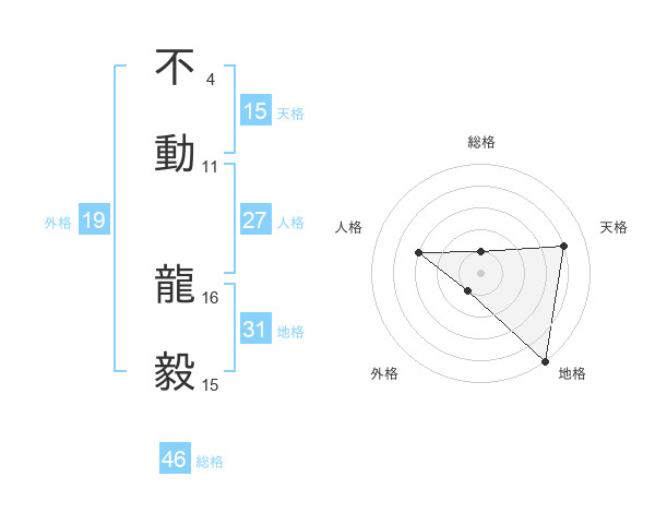 不動 龍毅さんの天格は15画の4点!