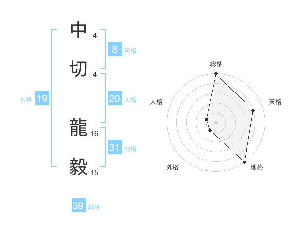 中切 龍毅さんを姓名の画数から五運を鑑定