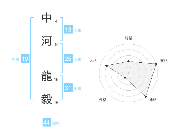 中河 龍毅さんの地格は31画の5点!