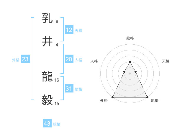 乳井 龍毅さんの総格は43画の2点!