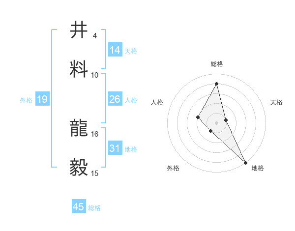 井料 龍毅さんの総格は45画の4点!
