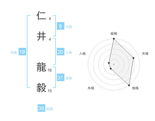 仁井 龍毅さんの総格は39画の5点!