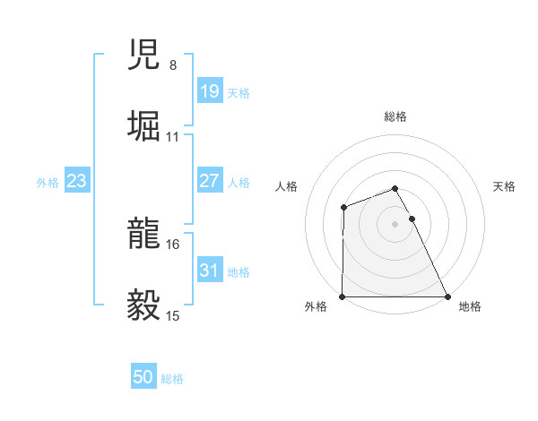 児堀 龍毅さんを姓名の画数から五運を鑑定