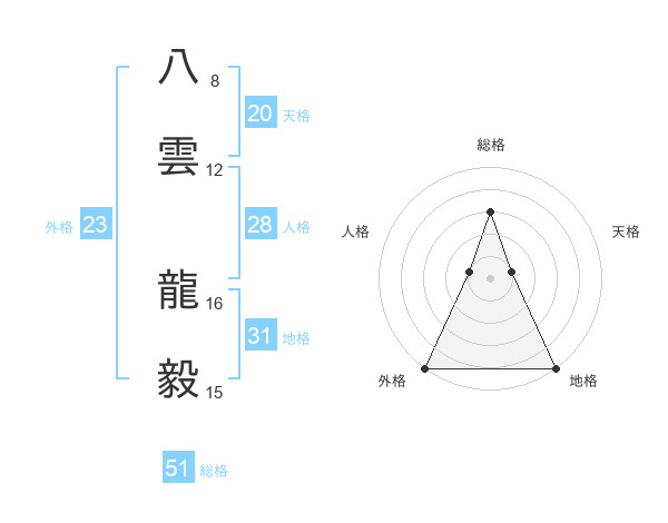 八雲 龍毅さんを姓名の画数から五運を鑑定