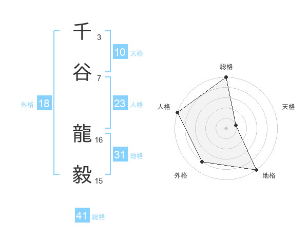 千谷 龍毅さんの総格は41画の5点!