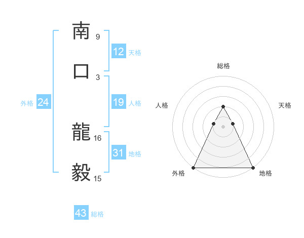 南口 龍毅さんの総格は43画の2点!