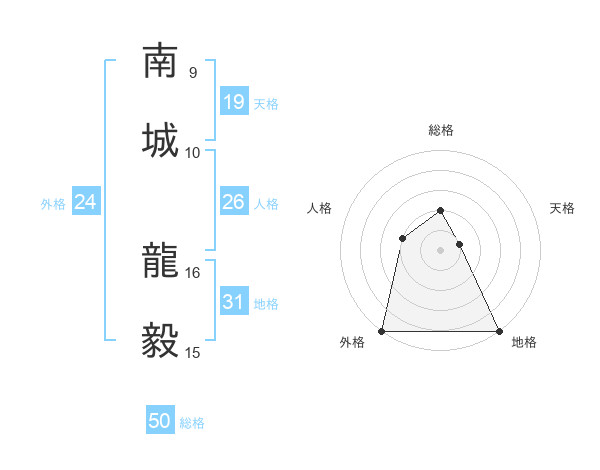 南城 龍毅さんを姓名の画数から五運を鑑定