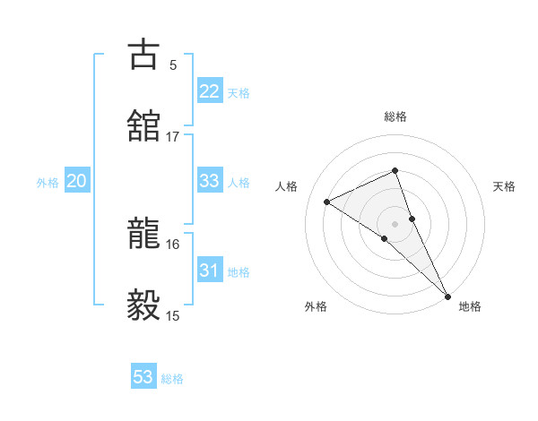 古舘 龍毅さんの総格は53画の3点!