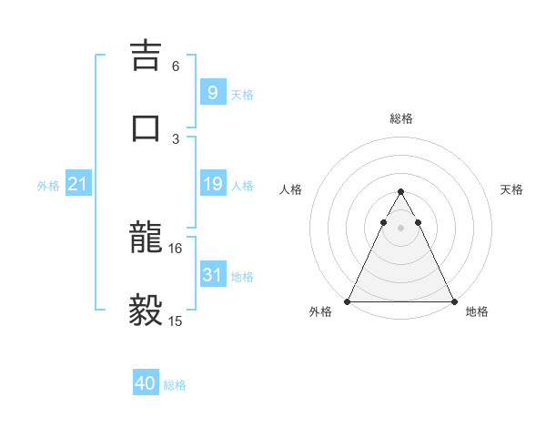 吉口 龍毅さんの総格は40画の2点!