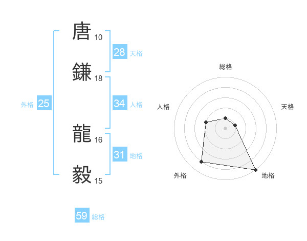 唐鎌 龍毅さんを姓名の画数から五運を鑑定