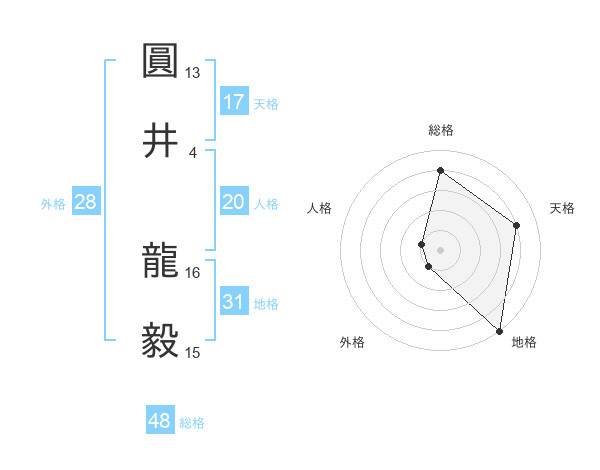 圓井 龍毅さんの天格は17画の4点!
