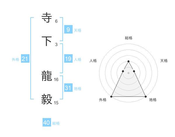 寺下 龍毅さんの外格は21画の5点!