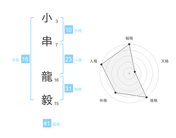 小串 龍毅さんの総格は41画の5点!