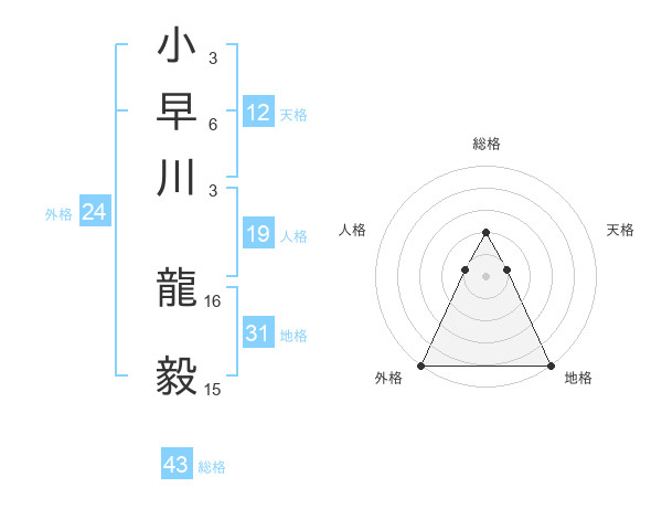 小早川 龍毅さんを姓名の画数から五運を鑑定