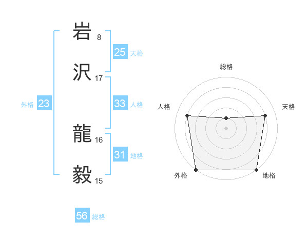 岩沢 龍毅さんを姓名の画数から五運を鑑定