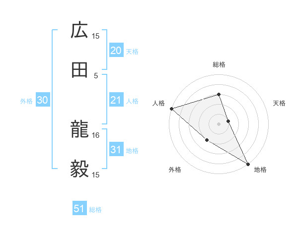 広田 龍毅さんの総格は51画の3点!