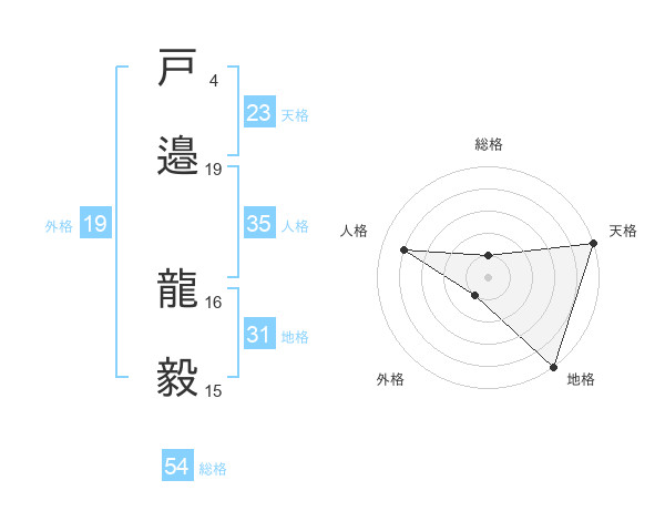 戸邉 龍毅さんを姓名の画数から五運を鑑定