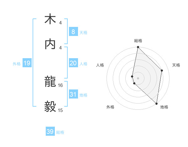 木内 龍毅さんを姓名の画数から五運を鑑定