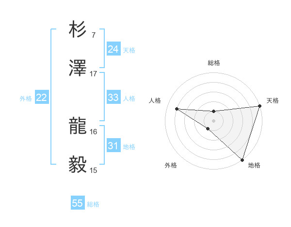 杉澤 龍毅さんの天格は24画の5点!