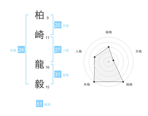 柏崎 龍毅さんの総格は51画の3点!