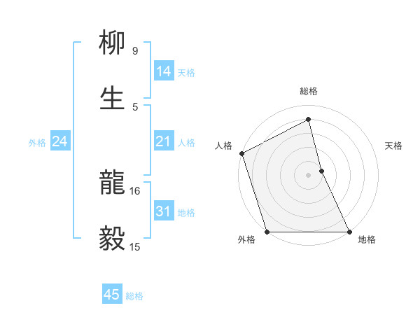 柳生 龍毅さんの地格は31画の5点!