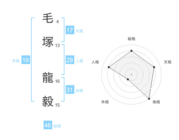 毛塚 龍毅さんを姓名の画数から五運を鑑定