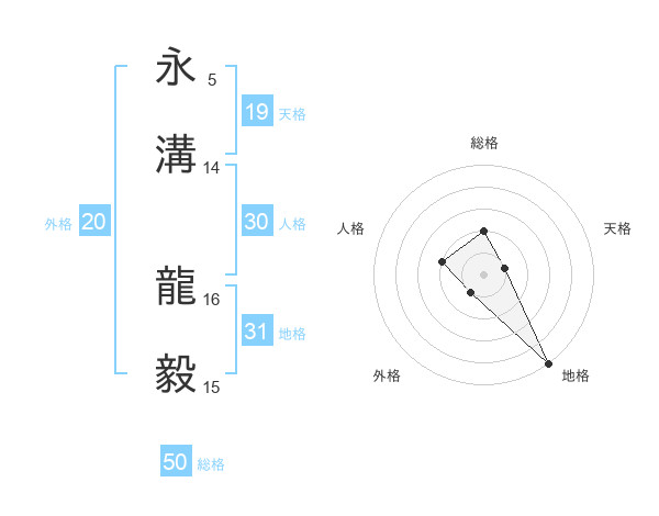 永溝 龍毅さんを姓名の画数から五運を鑑定