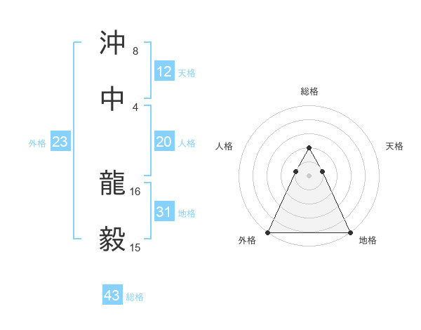 沖中 龍毅さんを姓名の画数から五運を鑑定