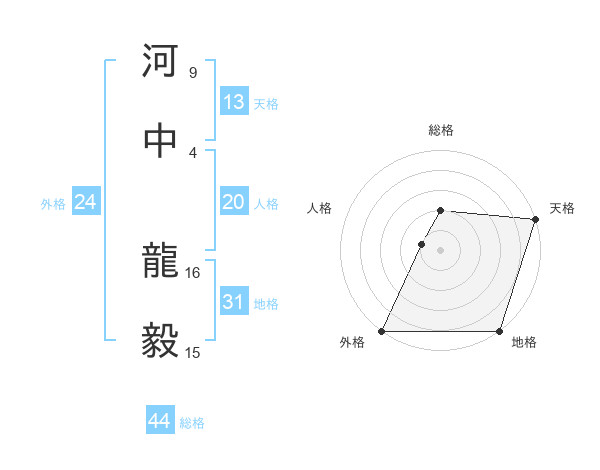 河中 龍毅さんの外格は24画の5点!