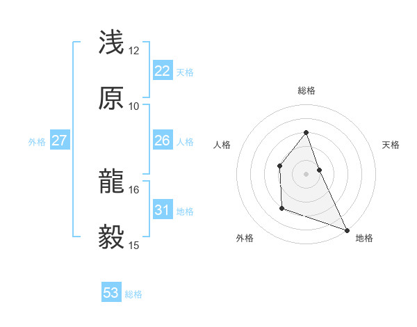 浅原 龍毅さんの総格は53画の3点!
